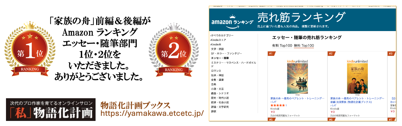 本作の執筆を2年間に渡り支え、指導してくださった山川健一先生が本作「家族の舟」について論じてくださいました。以下のバナーから、全文をご覧いただくことができます。