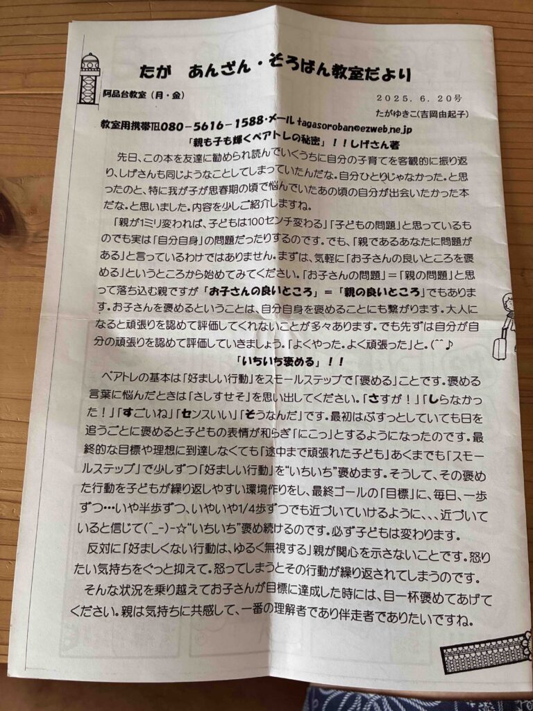 たが先生が紹介されていた、褒める言葉の「さしすせそ」、私も普段の子育てや、児童デイでの仕事の時に活用させていただきますね。